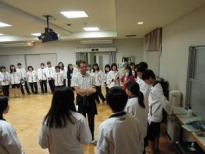 4月20日(金)・21日(土)の1泊2日、英語コース18期生(38名)を迎え、本校セミナーハウス「あさかぜ会館」にて英語合宿を実施しました。1日目は、「どんなクラスにしたいか?」「グローバル人材とは?」といったテーマで、ディスカッションをした後、英語コース行事についてのオリエンテーションが行われ、夜はクラス全員で英語を使っての様々なゲームに参加しました。2日目午前中は、辞書の使い方を学び、2年生からレシテーションコンテストに向けての指導を受けました。午後からはゲストとして招いた近隣のALT7名と共に、英語の発音やリズムを楽しく学ぶ活動やスキット作り等に積極的に取り組みました。この合宿を通して、クラスの仲間との交流も深まり、また、ALTの先生方と積極的に英語を話す姿も見られ、英語コース生としての3年間の第一歩を元気よく踏み出すことができました。